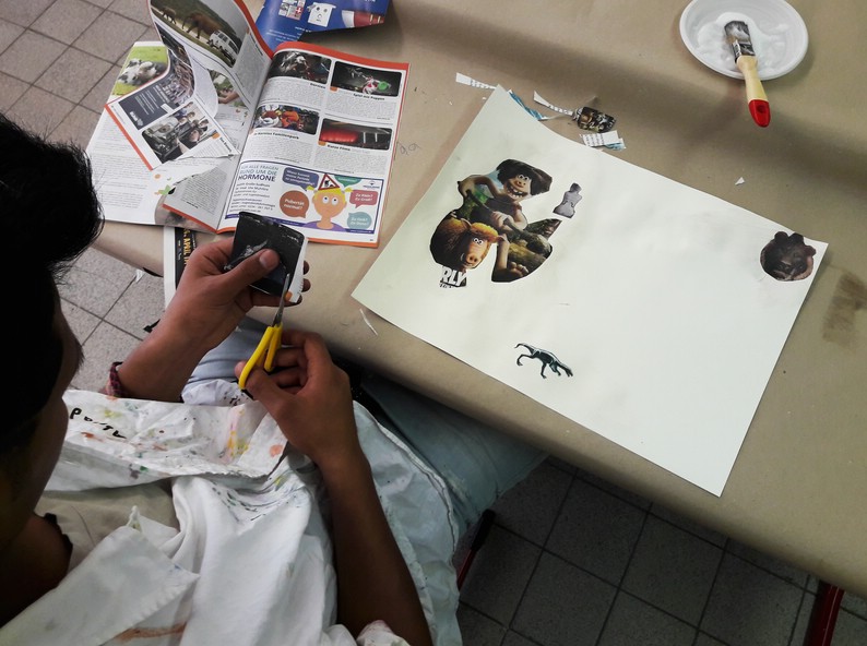 Aus der Einladung: „Es geht um Räume, eure Räume, euren Platz. Wir werden uns die aktuelle Ausstellung mit Bildern von Markus Huemer anschauen. Danach werdet ihr selbst loslegen! Wir machen Collagen – Bilder, und dreidimensionale Räume, die ihr ganz so gestaltet, wie ihr sie haben wollt.“