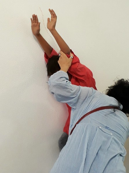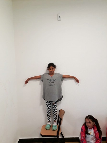 Im zweiten Schritt wurden ihre Körperumrisse an die Wand gezeichnet,..