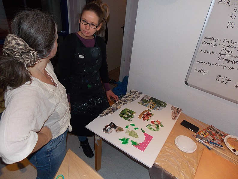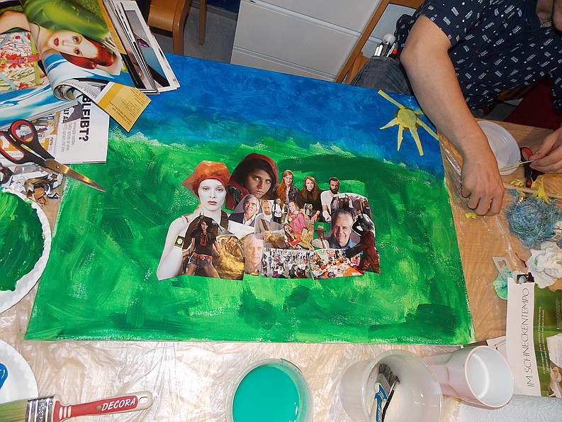 Für die Workshop Teilnehmer/innen, deren Bilder in den Räumlichkeiten aufs Schönste präsentiert waren. Für die zahlreichen Besucher/innen, die interessiert und berührt von dem Projekt, den beteiligten Menschen, und den entstandenen Collagen, angeregte Gespräche führten.