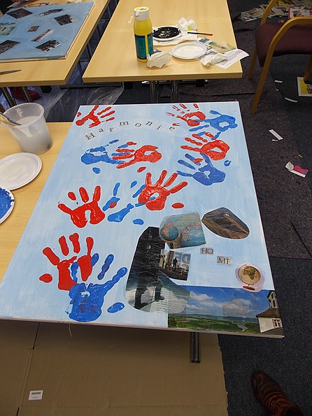 Dieses Gemeinschafts- Kunstprojekt hat wohnungslosen und wohnenden Menschen eine Möglichkeit gegeben sich über gemeinsames künstlerisches Tun zu zeigen und zu verbinden.