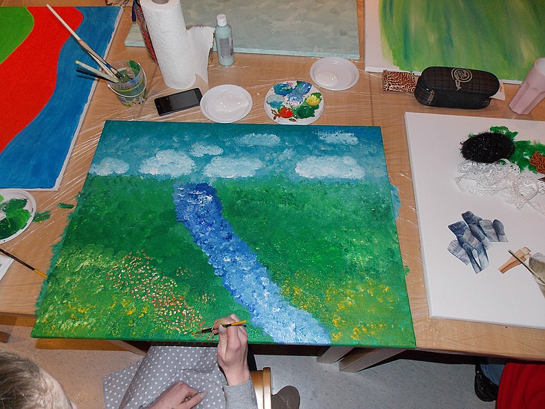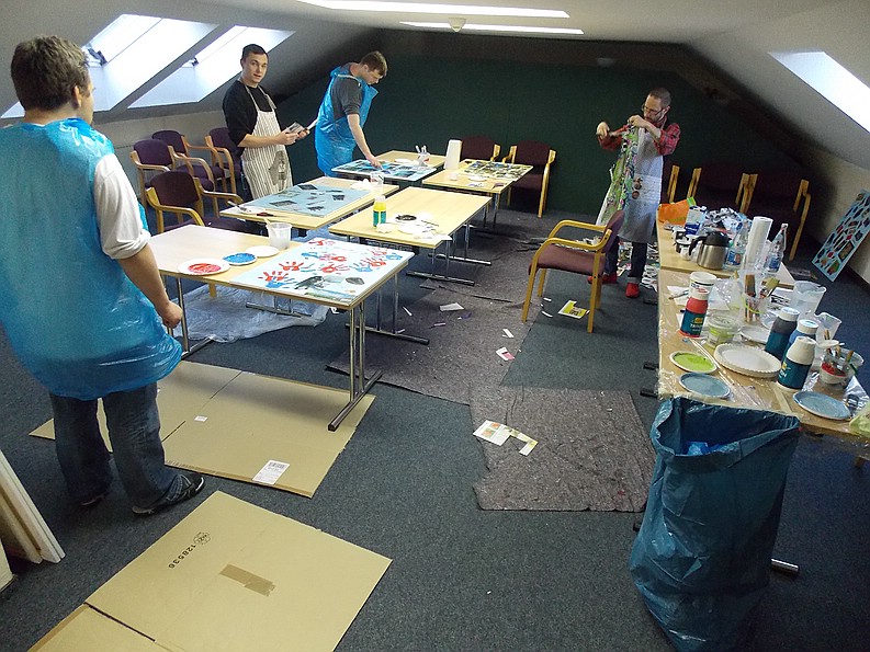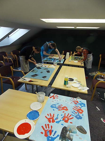 Dieses Gemeinschafts- Kunstprojekt hat wohnungslosen und wohnenden Menschen eine Möglichkeit gegeben sich über gemeinsames künstlerisches Tun zu zeigen und zu verbinden.