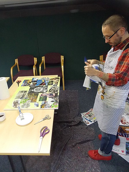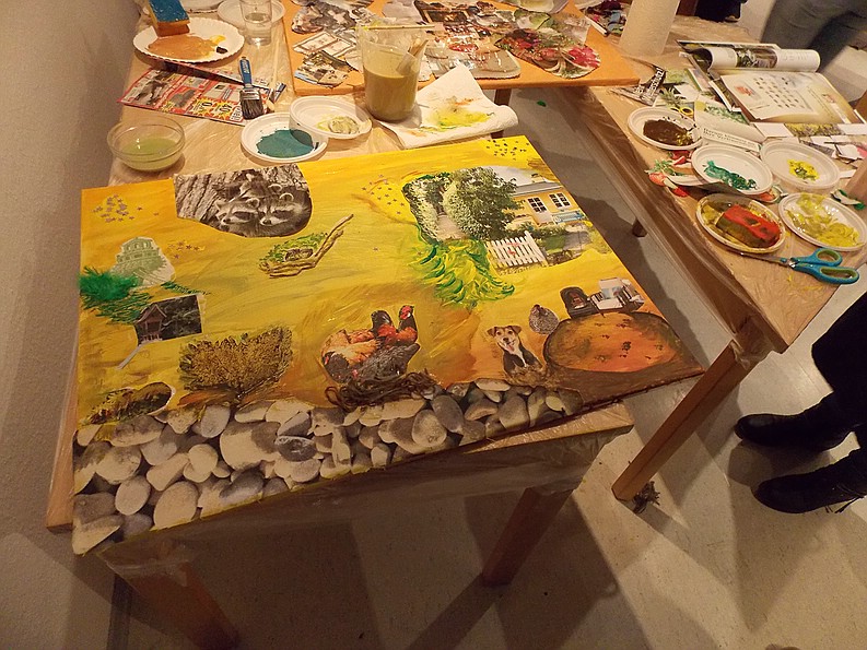 Für die Workshop Teilnehmer/innen, deren Bilder in den Räumlichkeiten aufs Schönste präsentiert waren. Für die zahlreichen Besucher/innen, die interessiert und berührt von dem Projekt, den beteiligten Menschen, und den entstandenen Collagen, angeregte Gespräche führten.